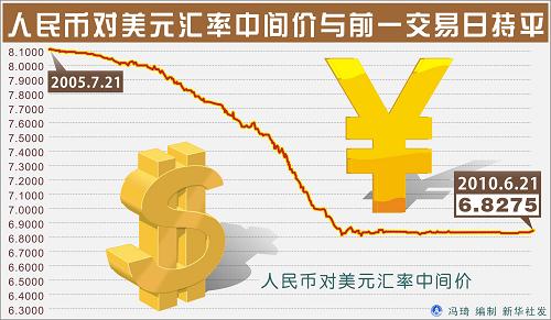 金融危機(jī)暴發(fā)后,人民幣匯率采取了實(shí)質(zhì)盯住美元的機(jī)制,對(duì)美元匯率中間價(jià)波幅明顯收窄。今年以來,人民幣對(duì)美元匯率中間價(jià)基本在6.826至6.828的區(qū)間內(nèi)運(yùn)行。6月22日的匯率變化顯示人民幣匯率彈性明顯增強(qiáng)。