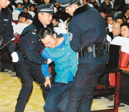 庭審中,藥家鑫向死者家屬下跪(資料圖)