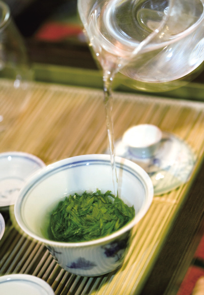 綠茶,現泡現喝。綠茶之所以具有抗氧化、清除自由基、抗衰老、抗病毒等保健功能,主要是因為茶葉中的多酚類物質。如果沖泡溫度過高或時間過久,多酚類物質就會被破壞,茶湯不但會變黃,其中的芳香物質也會揮發散失。一般來說,綠茶沖泡水溫以80℃為宜,水初沸即可。沖泡時間以2—3分鐘為好,最好現泡現飲。綠茶與水的比例要恰當,以1:50為宜,常用3克茶葉沖水150毫升,沖泡出來的綠茶湯濃淡適中。黃茶和白茶的沖泡方法與此接近。