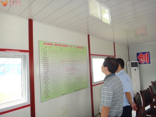 圖為開學前夕,為保障農民工子弟上得了學,勞保執法部門到保障房工地察看農民工工資及時發放表時的情形。(王李王貴珊王丁寶)