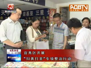 近日,宜秀區委宣傳部掃黃打非辦公室聯合區文廣新局、區公安分局、區工商分局等相關部門開展“掃黃打非”專項整治活動。對全區文化市場進行專項檢查整治。