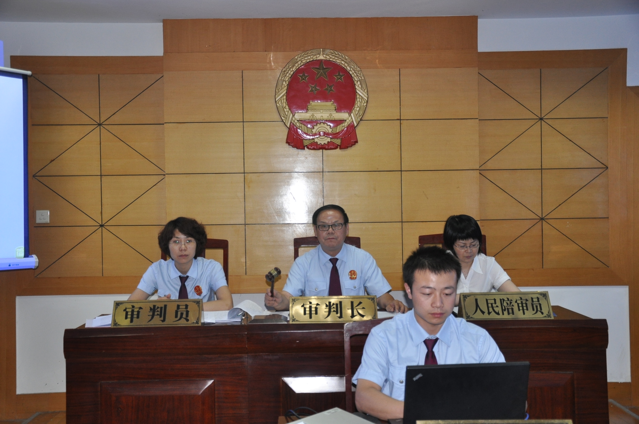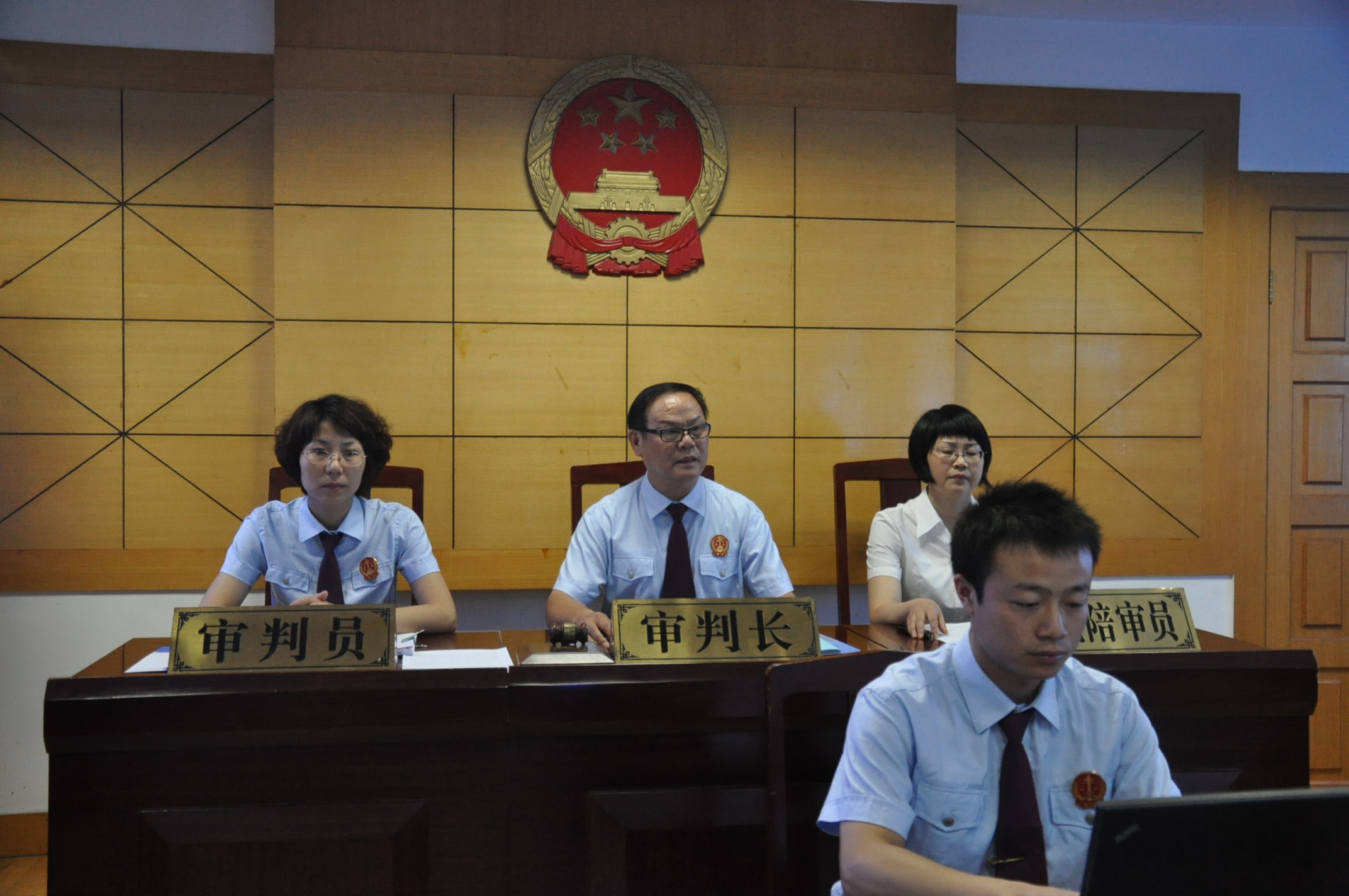 3、全體起立,請審判長、審判員、人民陪審員入庭。