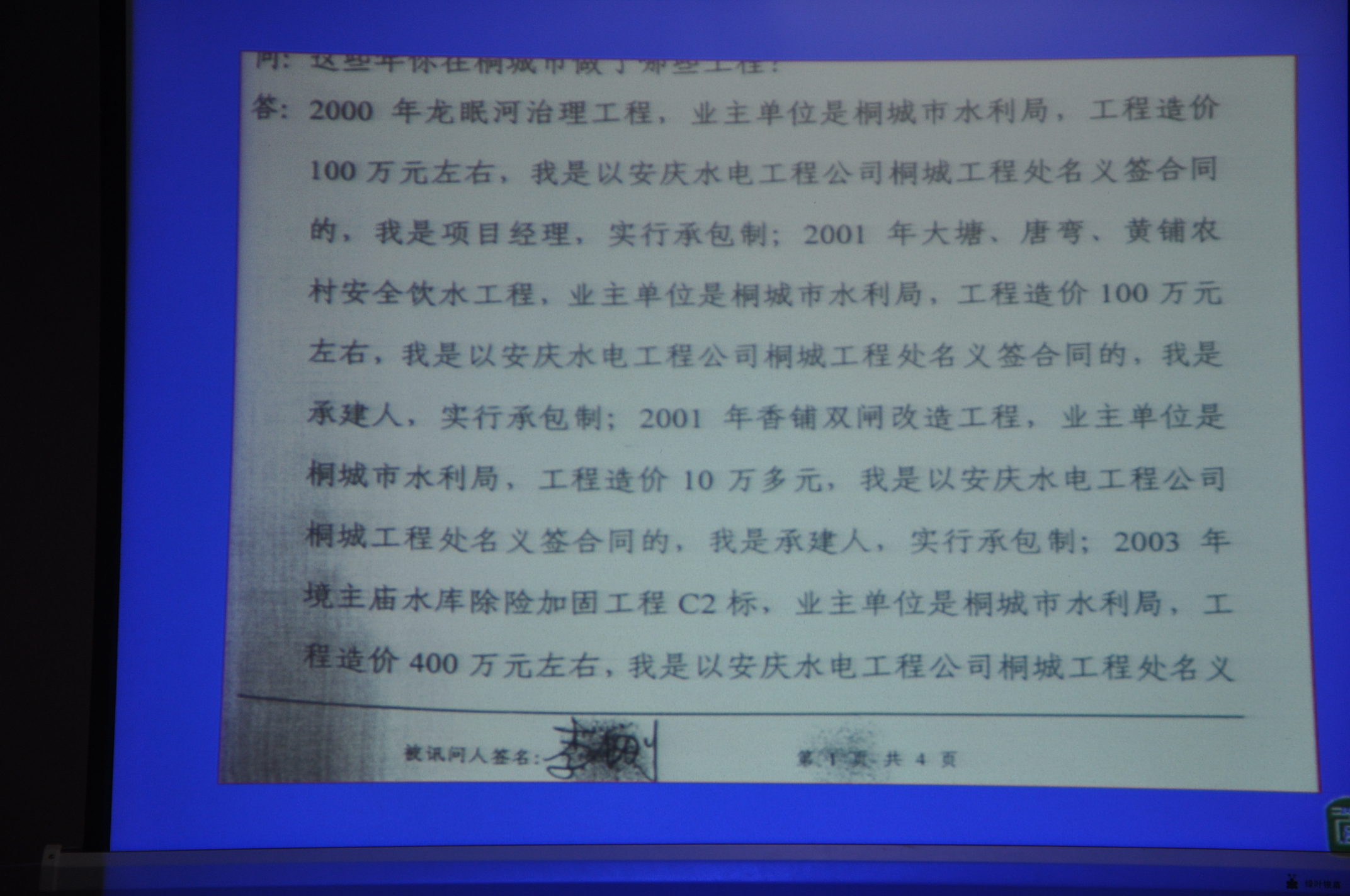 公:你在2005年至2009年期間是否在桐城市承建桐城市水利工程。