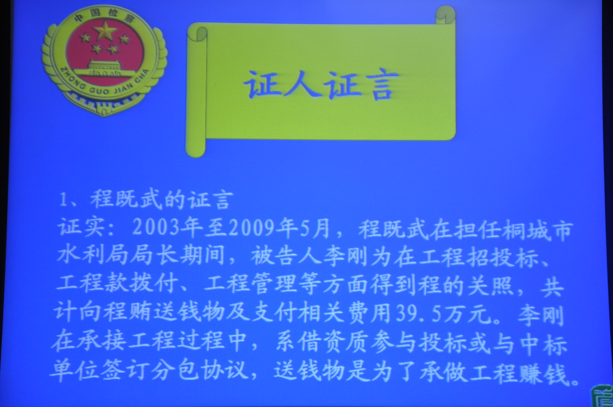 審判長宣布開庭審理被告人李剛行賄一案。