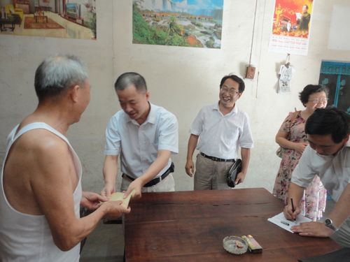 7月26日上午,區委常委、宣傳部長嚴鋒在區民政局、楊橋鎮黨委分管領導陪同下到楊橋鎮鹿山村、余灣村慰問看望重點優扶對象林華來、余建科兩位老復員軍人,區領導在“八一”來臨之前慰問軍烈屬家庭,對他們進行了節日的問候與祝福,同時送去了慰問金。圖為區委常委、宣傳部長嚴鋒在余灣村慰問看望老復員軍人余建科的情景。(江立新)