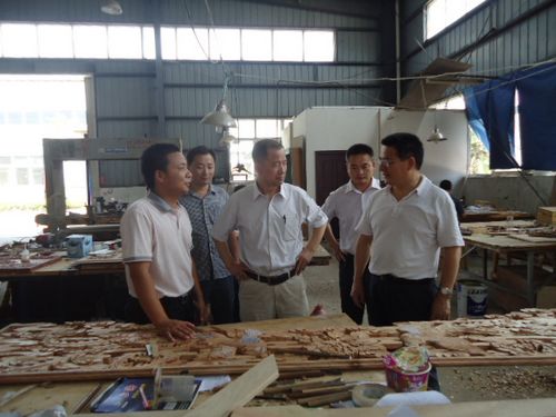 嚴鋒一行首先來到御福堂門業產品陳列室觀看該公司的產品,聽取了企業負責人關于產品研發和銷售情況的匯報,并來到生產車間實地察看工人們的生產狀況。嚴鋒對該公司近幾年來取得生產業績表示贊賞,對企業在幫助當地群眾再就業中做出的貢獻予以充分肯定。