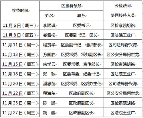 宜秀區(qū)2013年11月黨政領(lǐng)導(dǎo)干部信訪接待日安排表