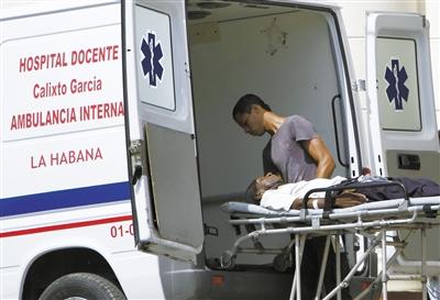 2012年8月,古巴哈瓦那,一名病人正被送入救護