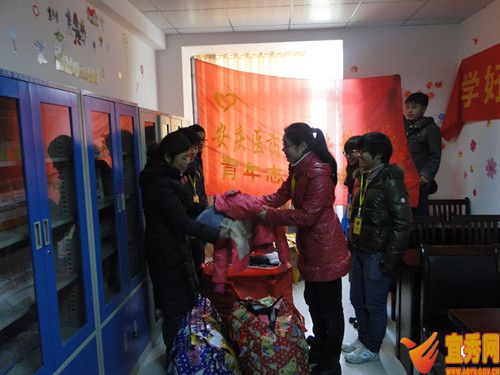 1月10日上午,安慶醫藥高等?茖W校青年志愿者在大龍山鎮團委的組織下,來到該鎮留守兒童之家,為這里的留守兒童捐贈過冬衣物。