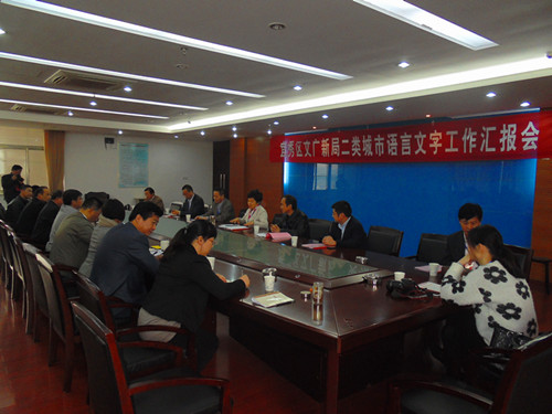 10月30日下午,省二類城市語言文字工作評估組到我區(qū)檢查指導(dǎo)語言文字工作,市教育局副局長周泉,區(qū)委常委、副區(qū)長胡忠明參加了工作匯報會。
