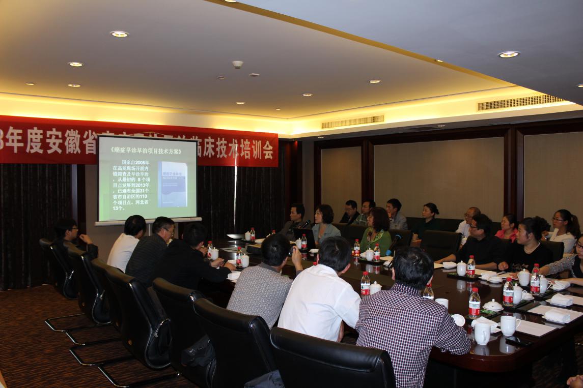 11月9日,安徽省2012/2013年度癌癥早診早治項目工作總結暨2013/2014年度工作啟動會議在宜秀區(qū)隆重召開,省衛(wèi)生廳疾控局張爾慶副局長、市衛(wèi)生局儲艷云局長出席會議并講話,省疾控中心慢病科、市衛(wèi)生局疾控局、市疾控中心、區(qū)衛(wèi)生局有關負責同志參加會議,會議還邀請了國家癌癥早診早治專家?guī)斐蓡T張立瑋、王小玲教授來宜授課,來自全省13個項目縣區(qū)的100余人參加會議。