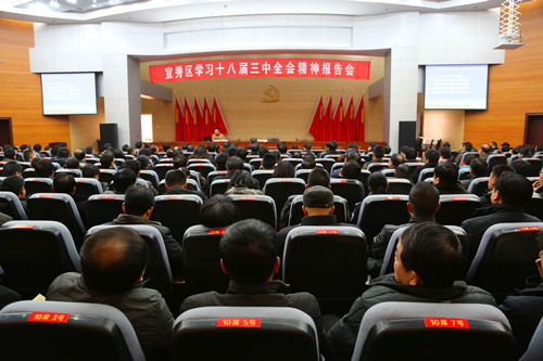 會議要求全區各級黨組織要把認真學習領會全會精神,把全會精神和當前各項工作有機的結合起來,轉化為推動工作的內在動力。要突出重點,充分認識學習黨的十八屆三中全會精神的重大意義,用全會精神指導和推動宜秀經濟社會持續健康發展;各單位、各部門要按照區委的統一部署,結合實際、精心組織,周密安排,迅速掀起學習黨的十八屆三中全會精神熱潮,匯聚起推動改革發展的強大思想動力,并轉化成在大宜城建設中爭當排頭兵的實際行動;要聯系實際,把學習貫徹黨的十八屆三中全會精神和學習當前區委二屆四次全體(擴大)會議精神和謀劃明年的工作有機結合起來,統籌兼顧,扎實推進,同學習、同貫徹、同部署,確保學習和工作兩手抓、兩不誤、兩促進。(葉帥)