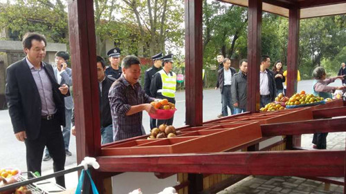為改變這一現(xiàn)狀,去年6月份,鎮(zhèn)村兩級共同出資,每隔一段距離就建立一個(gè)攤位,攤位統(tǒng)一名稱為“水果驛站”,采用木質(zhì)結(jié)構(gòu),帶有徽派建筑風(fēng)格,每個(gè)攤位能容納8到10戶村民。為貼近當(dāng)?shù)芈糜螝庀ⅲA站外觀上通過文字圖片形式介紹了該鎮(zhèn)的風(fēng)土人情、物產(chǎn)資源、人文文化,還有一些關(guān)于社會(huì)主義核心價(jià)值觀內(nèi)容。如今,該鎮(zhèn)已經(jīng)有7座統(tǒng)一風(fēng)格的驛站,免費(fèi)供村民們使用。