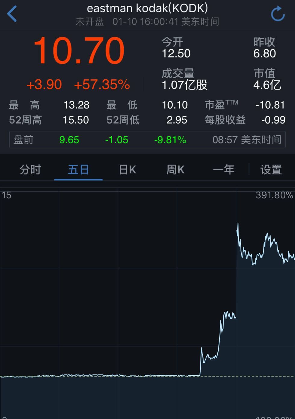 3、近130歲的柯達公司加入加密貨幣熱潮后,股價兩天累計暴漲245%。