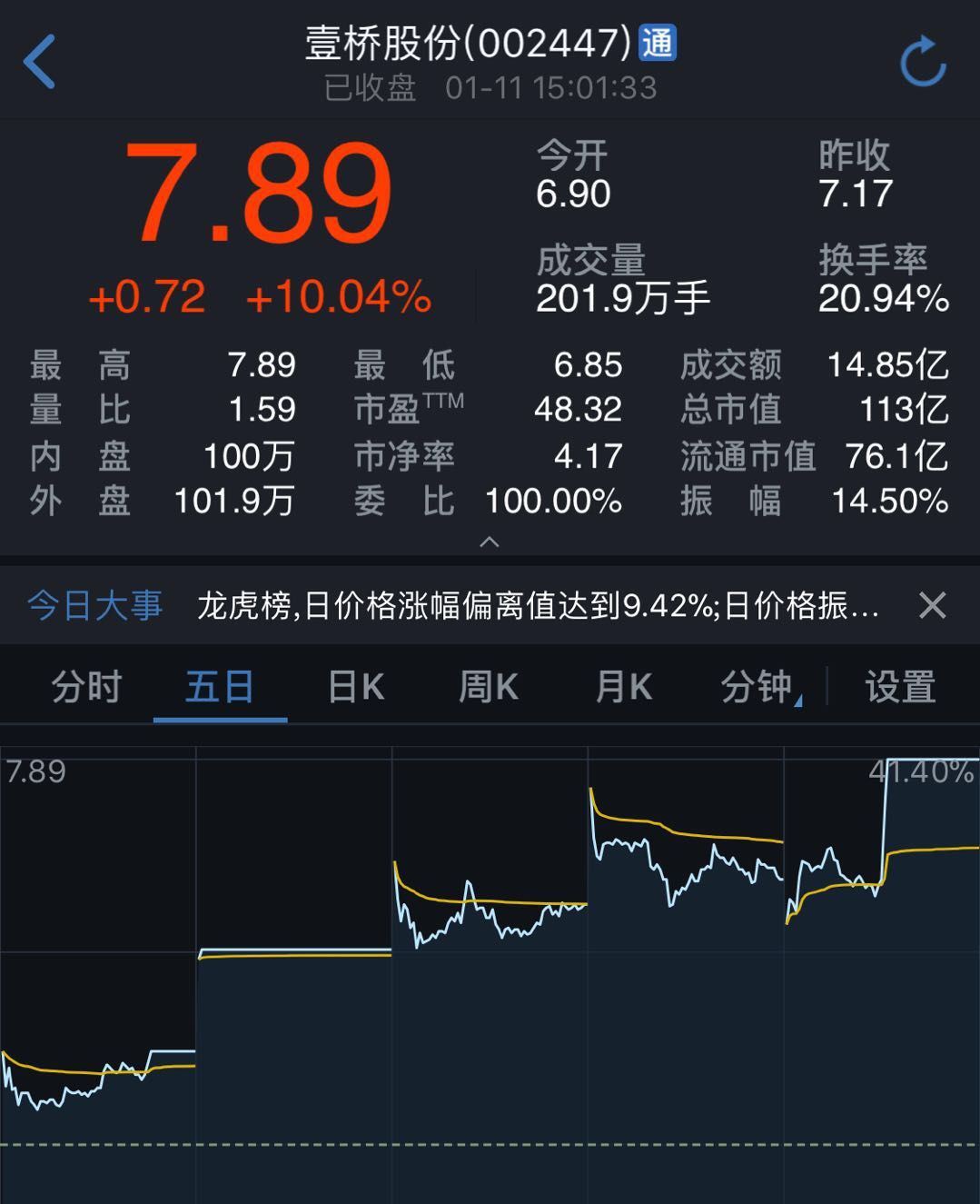 2、壹橋股份(8.480, 0.59, 7.48%)則以近50%的漲幅位居第二。公開資料顯示,這家公司改名的速度幾乎可與曾經的匹凸匹媲美。2010年,公司以 “壹橋苗業(yè)”的名稱登陸A股,到了2015年1月更名為“壹橋海參”,2016年10月由于形成了海珍品和移動游戲“雙主業(yè)”,又更名為為“壹橋股份”,2017年12月1日,又由于當前不再存在海珍品業(yè)務,試圖更名為“晨鑫智能”,但在遭到來自監(jiān)管層的問詢后暫時作罷。
