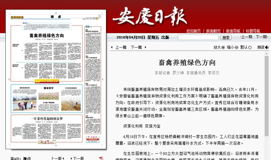 安慶日報:畜禽養殖綠色方向