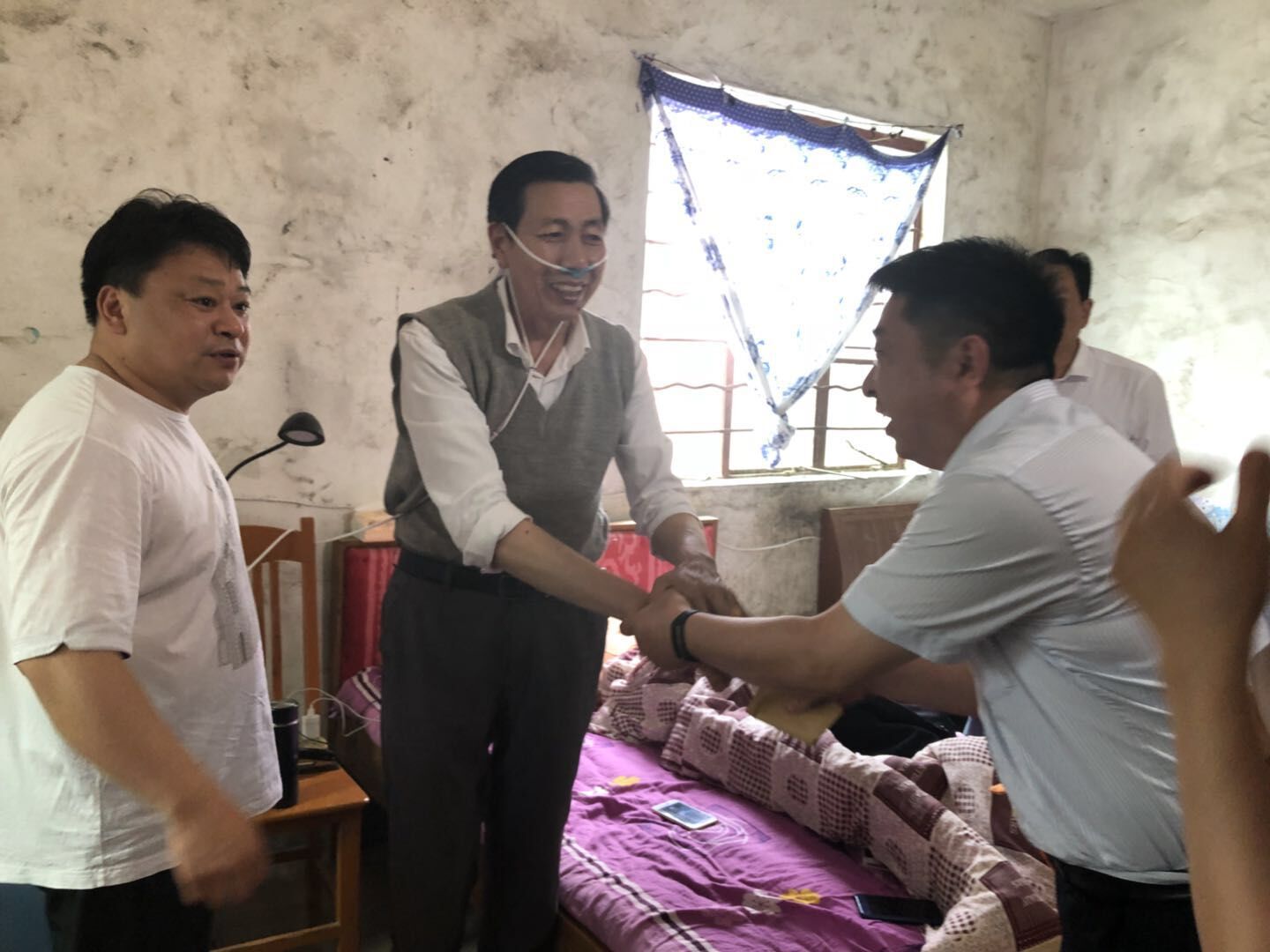 2018年眉山村的棚改任務時間短,任務重,高速入口那宗地塊的拆遷只有一個多月時間,目前,43大戶已經拆遷35戶,還有8戶面臨著人多屋少的狀況。許濟懷的家就在這8戶中間,此時的他已經是塵肺病三期,掛著氧氣瓶24小時吸氧,時日不多。但就在這樣的情況下,5月9日他還是艱難的走到眉山村部,一臉郁悶的問著村里書記楊民:“怎么不到我家去啊,你把我當成釘子戶了?”楊民解釋說:“你家人多房少,對于這個情況政府最新的政策還沒出來,要去你們家談的話,需要下掉3人的戶口認證。”許濟懷一聽,回去就召集了四個姐妹來家中,把情況一說,大家都不樂意了,拿掉誰的戶頭呢?許濟懷大手一揮“都別爭了,下掉我家三個人的,你們的都歸你們。”幾個姐妹都愣住了,“不要為難政府,既然有政策我們就按政策來。”第二天,在眉山村部,許濟懷跟村部的負責同志說:“不是多了三個戶頭嘛,把我和我老婆何玉芳,兒子何俊的下下來,協議快點簽掉,不能耽誤村里的大事。明天我們就搬走。”沒有想象中的紛繁復雜的政策解讀,沒有斤斤計較的家庭內戰,這件事就在許濟懷的無私下簡單、迅速的解決。頭一天簽好協議,第二天就搬走,接下來的幾天里,許濟懷和妻兒、孫女準備在小旅館住上幾天,就去重慶兒子家里,他說,兒子的新房裝修好,還沒去看看,看上一眼,此生就沒有什么遺憾了。那天,眉山村部里所有的工作人員都被感動了,大橋街道辦事處的主任李何懼提議給許濟懷捐款,第二天,許濟懷在搬家的時候,幾千元的捐款也送到他手中,區文明辦、民政局、婦聯、工會聽聞許濟懷的事跡也紛紛送去慰問金。