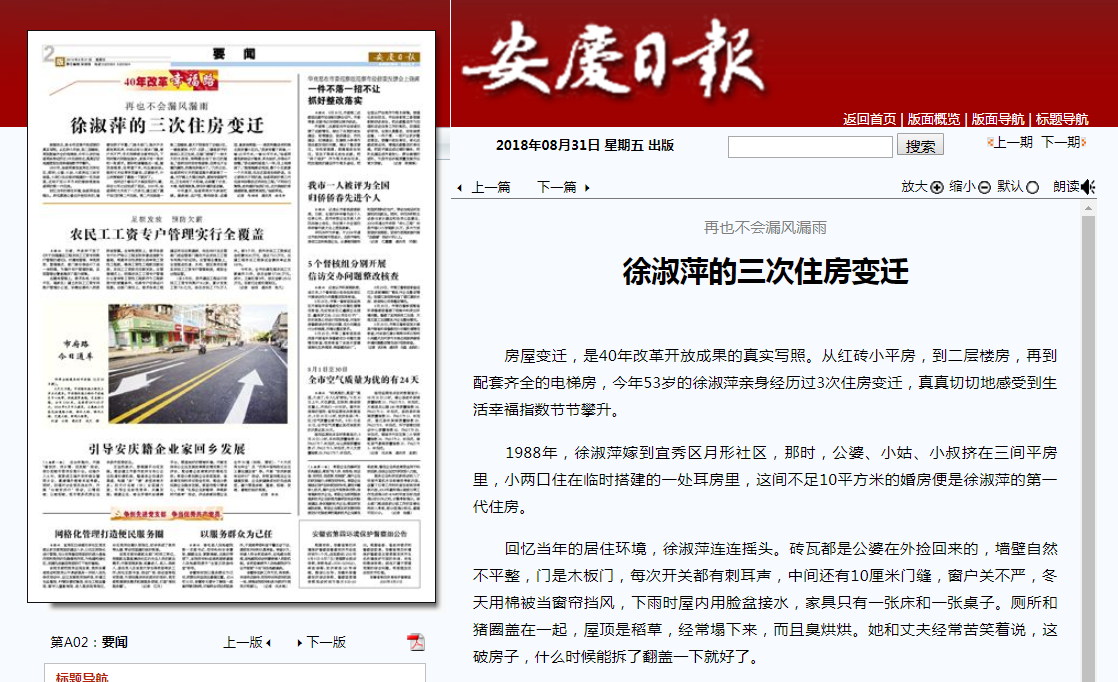 房屋變遷,是40年改革開放成果的真實寫照。從紅磚小平房,到二層樓房,再到配套齊全的電梯房,今年53歲的徐淑萍親身經歷過3次住房變遷,真真切切地感受到生活幸福指數節節攀升。
