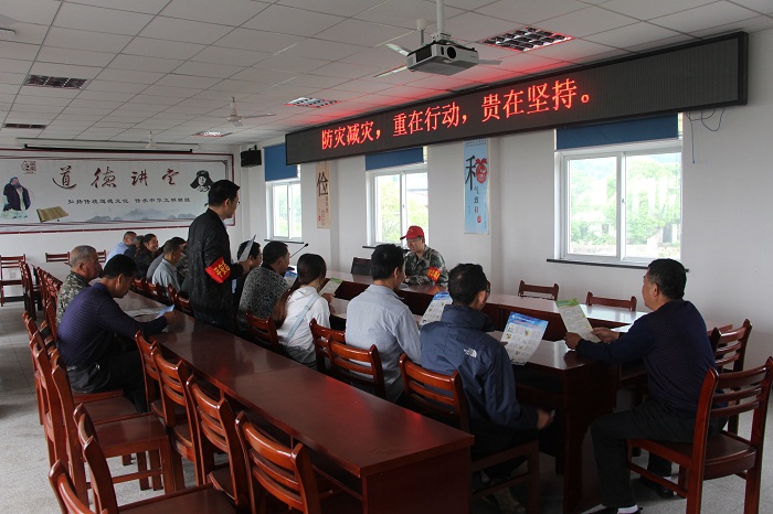 活動結束后,龍山社區志愿者積極開展防災減災知識宣傳“三百活動”。在社區會議室舉辦防災減災專題知識講座。志愿者詳細地向與會的群眾講解了防災減災政策法規、家庭防火、地震、山洪、初期火災撲救及逃生自救等基本常識,并就互動中大家最為關注的家庭用火、用電注意事項、防災減災及防范應對措施等問題,一一作出解答。