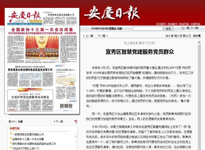 [安慶日報頭版] 宜秀區(qū)智慧黨建服務(wù)黨員群眾