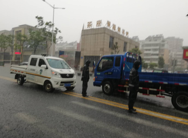 汛情就是命令!宜秀區(qū)城管局迅速行動起來,組織全員上路,對轄區(qū)積水嚴重的中山大道、祥和路、經十四路、文苑路和七街等道路采取臨時警戒和封閉,警示告知來往車輛、行人繞行。隊員們冒著大雨對車輛和行人進行疏導,并安排拖車清理熄火車輛,及時轉移內澇嚴重的田園小區(qū)居民,保障了交通暢行和群眾生命財產安全。另外密切關注天氣變化,對轄區(qū)內山洪地質災害區(qū)域加強安全隱患排查,對戶外大型廣告牌匾進行排查,防止因大風天氣造成墜落傷人事故發(fā)生,同時積極參與城鄉(xiāng)低洼處排澇工作,減少群眾財產損失。26日上午在對轄區(qū)內山體滑坡區(qū)域進行巡查防控時發(fā)現一處高壓線裸露在城市道路上,城管隊員立即在周邊設置警戒線并安排專人值守,防止意外發(fā)生,保障人民群眾出行安全。