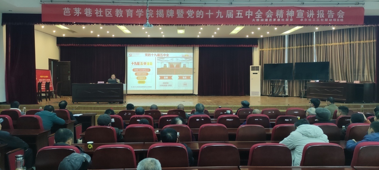 會上,卓爾社工邀請了肖克順教授為全體社區黨員、單元長、社區工作人員作了黨的十九屆五中全會精神宣講報告。(王奎  江軍)