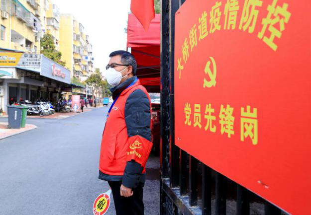 (卓爾社工王奎在疫情防控執勤點上執勤)