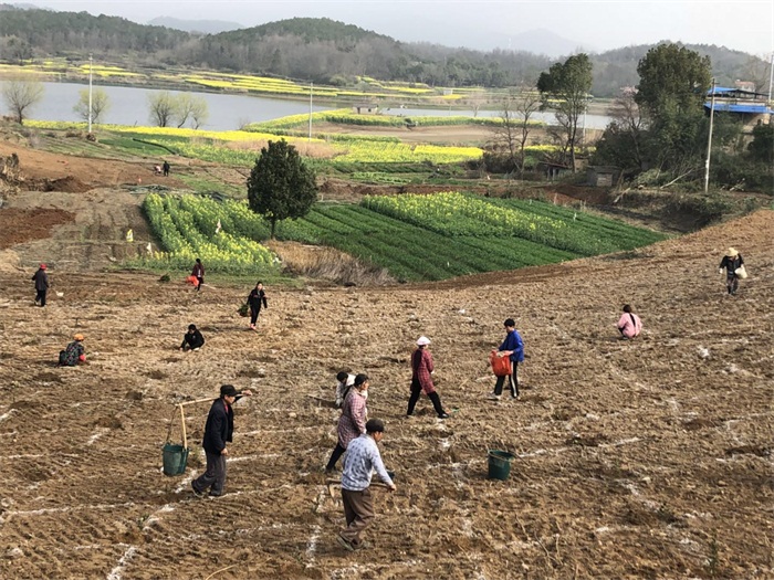 全體機關干部及部分群眾共百余人前往鮑沖湖村桃園基地開展義務植樹活動。該基地占地100畝,擬栽種4000株白桃、紅桃等果木打造百畝桃園,此舉不僅壯大集體經濟收入、帶動貧困戶就業,還為鄉村旅游增添一個新的景點。
