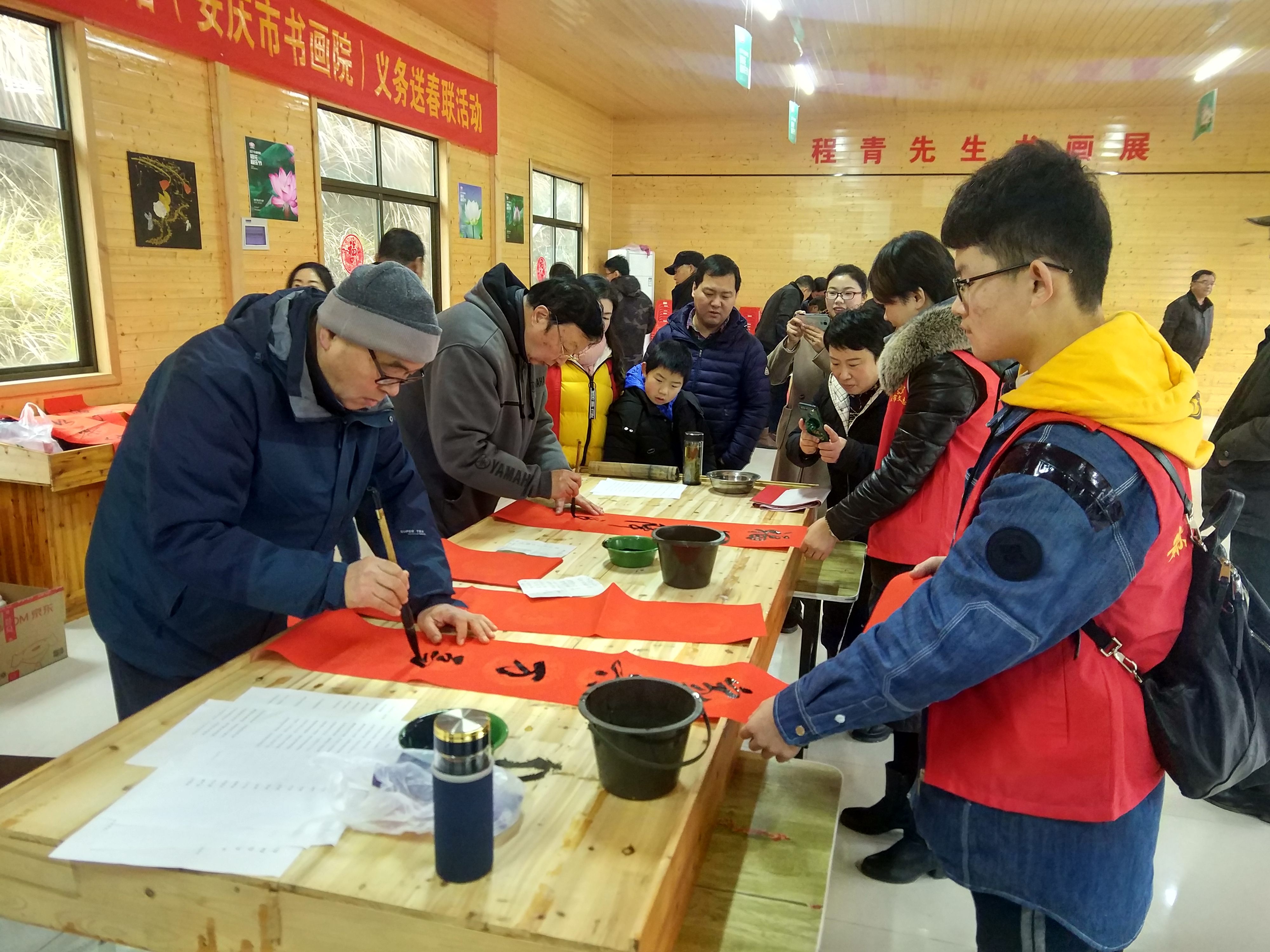 新春佳節臨近,為弘揚中華民族傳統美德,營造吉祥熱鬧的春節氛圍。1月11日上午,安慶市美術館、安慶市書畫院聯合楊橋鎮時代文明文明實踐所在鮑沖湖村開展了“我們的中國夢—文化進萬家”義務寫春聯送福活動。安徽省中國美協會員書畫家陸平、房學蓬等5位國家、省級書畫家和書畫志愿者冒著三九嚴寒走進鄉村,為轄區村民送上手寫春聯表達新春祝福。