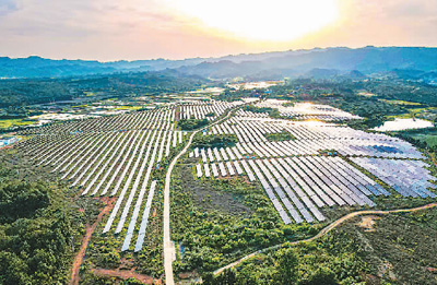 近年來,江西省撫州市廣昌縣大力推進光伏發電項目建設,目前已建成五十九個光伏發電站項目,總容量達四點七萬千瓦。圖為廣昌縣頭陂鎮龍港村林光互補光伏發電站項目。