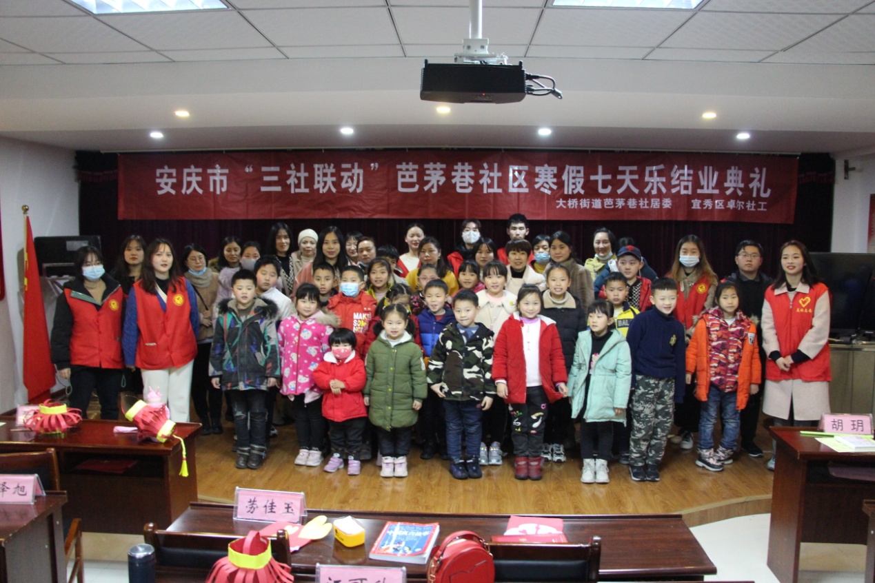 2月4下午,安慶市“三社聯(lián)動”芭茅巷社區(qū)寒假七天樂結(jié)業(yè)典禮在社區(qū)四樓會議室成功舉行,志愿者、學(xué)生及家長共60余人參加。