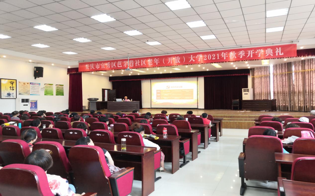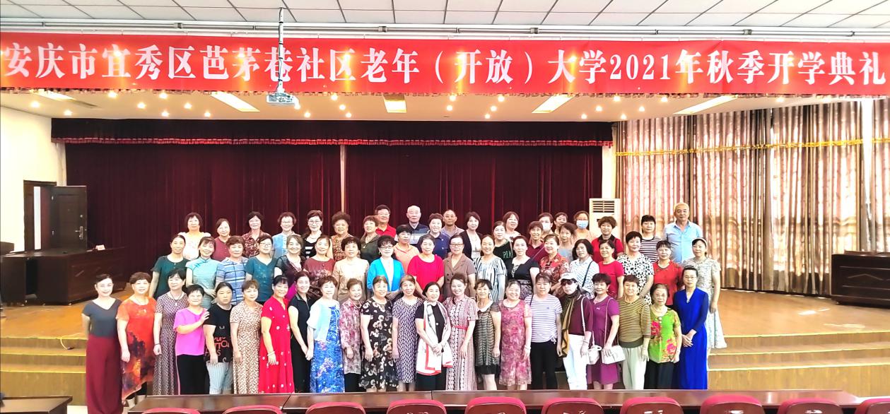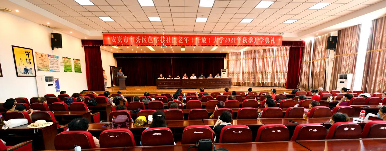 金秋九月,丹桂飄香,2021年9月17日,芭茅巷社區(qū)老年(開放)大學(xué)2021年秋季開學(xué)典禮在芭茅巷社區(qū)一樓報(bào)告廳舉行,市老年大學(xué)工作處處長程夕中、安慶廣播電視大學(xué)副校長王佩捷、宜秀區(qū)老年大學(xué)校長昝建亮、宜秀區(qū)老年大學(xué)副校長李光彩、區(qū)民政局黨組成員,副局長汪博、宜秀區(qū)青少年校外活動(dòng)中心副主任蘇家三、大橋街道黨委副書記孫佳、芭茅巷社區(qū)黨委書記徐飛、芭茅巷社區(qū)老年大學(xué)校長張振中及百余名老年大學(xué)師生參加。