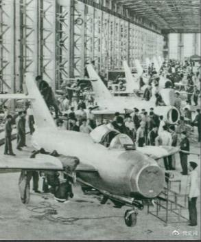 1956年7月19日,國產第一架噴氣式戰斗機在沈陽首次試飛成功,標志著中國具備了獨立研制空軍武器裝備的能力。圖為國產第一批噴氣式飛機即將出廠。