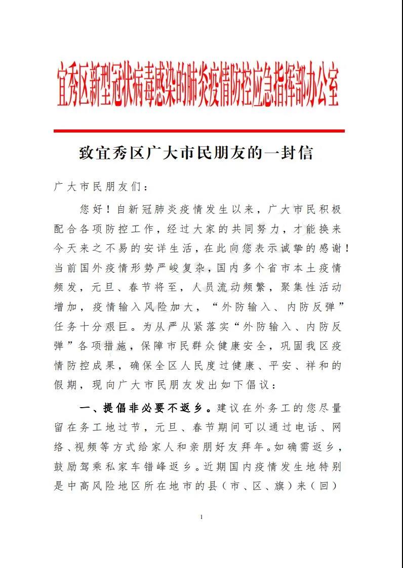 致宜秀區(qū)廣大市民朋友的一封信