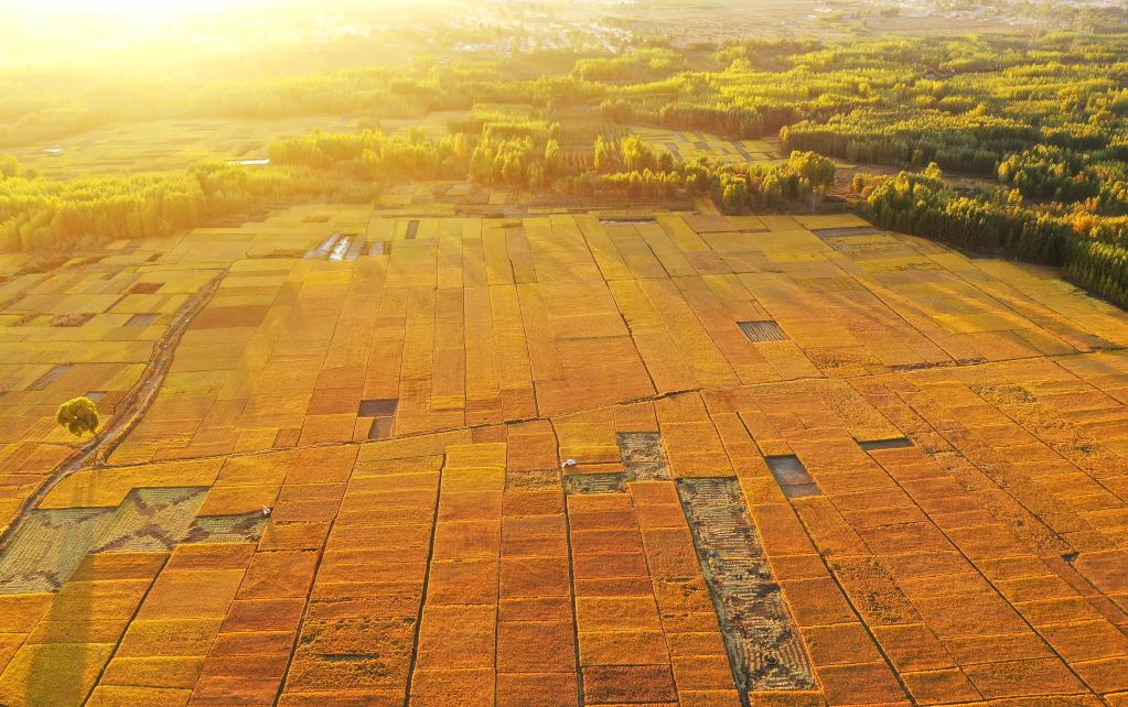 2020年10月18日在河北灤州市古城街道蔣莊村拍攝的稻田(無人機照片)。新華社記者 牟宇 攝