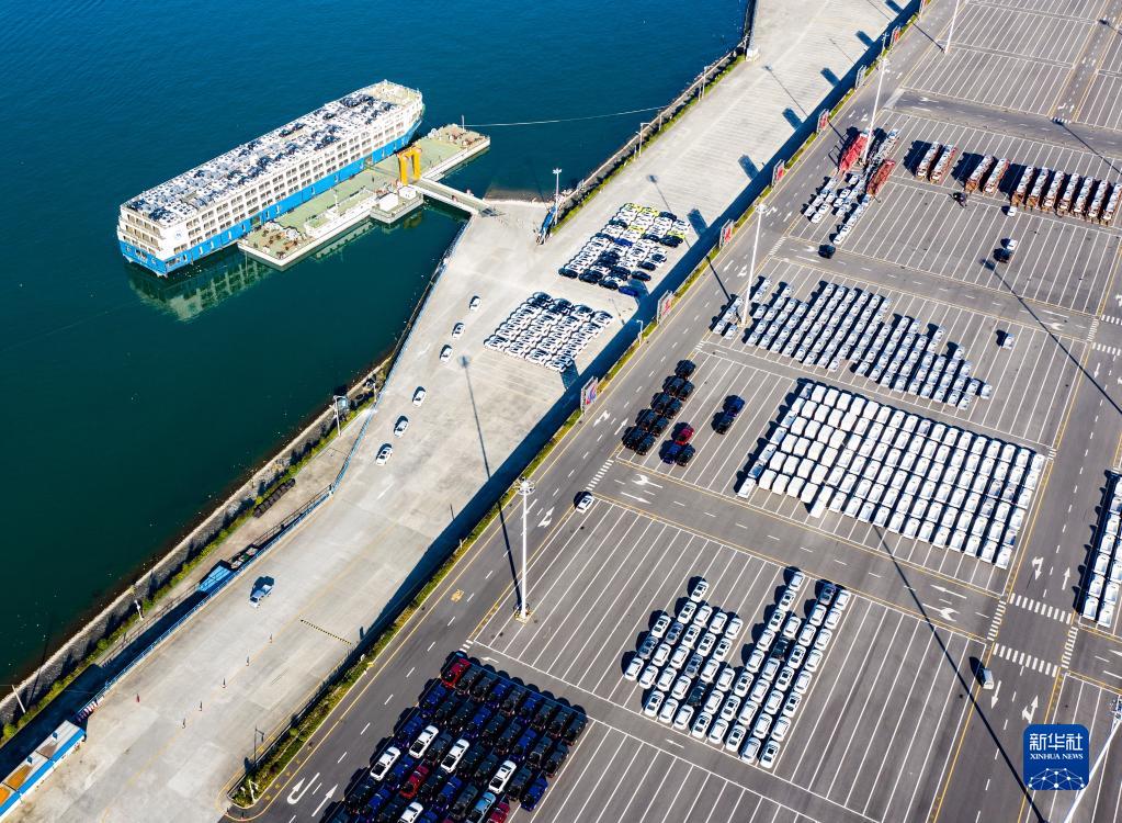 這是三峽庫區湖北省宜昌市秭歸縣秭歸港車輛分撥轉運現場(2020年11月13日攝,無人機照片)。新華社發(鄭家裕 攝)