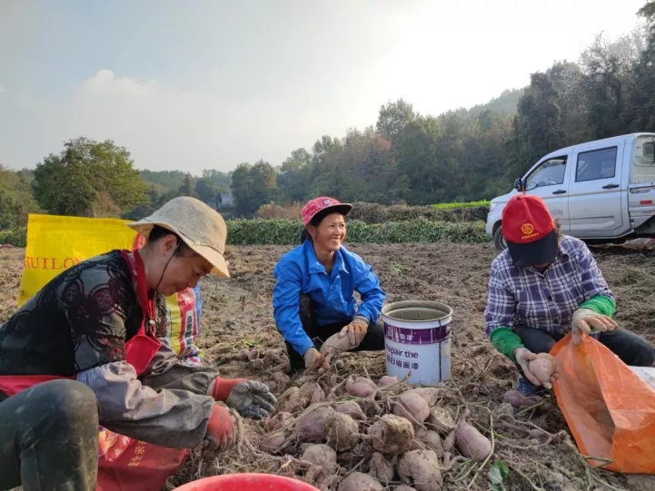 “以前我們種紅薯只能用來喂豬喂雞,雖然種的收成多,但基本都堆在家里。現在我們村成立了合作社,紅薯挖回來就能過稱,給我們增加了很多收入。”虎山村楊賢苗拿著鋤頭在田頭笑呵呵地說道。