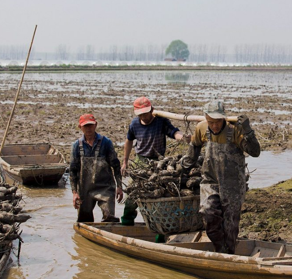 “春種一粒粟,秋收萬顆子。”初夏賞荷,盛夏采蓮,入秋吃藕。金秋時節的龍山社區螺螄島,映入眼簾的是一片豐收繁忙的景象。幾位專業挖藕人身穿防水服,在齊腰深的水中,手持高壓水槍在水下不停的掃射,不一會水面就飄滿白花花的田藕。