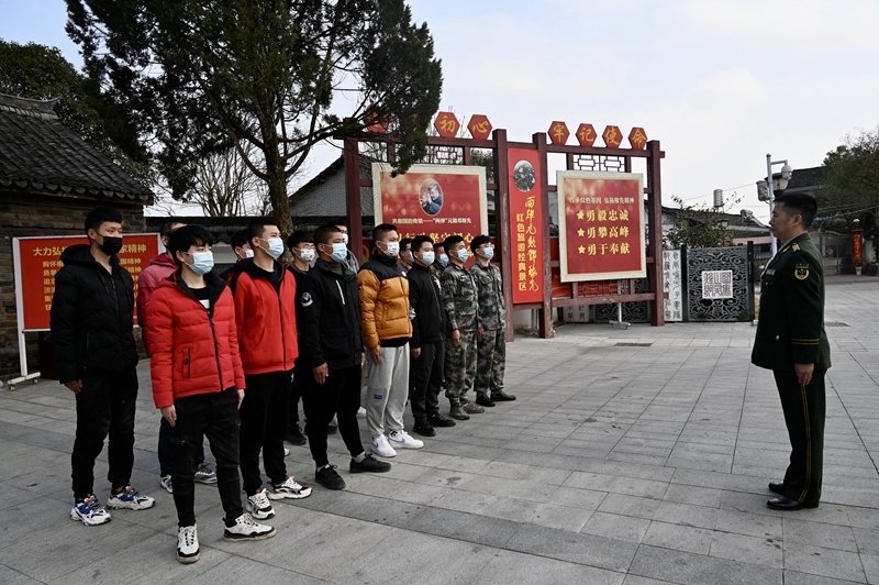 儀式結(jié)束后,楊劍鋒來(lái)到“兩彈元?jiǎng)?rdquo;鄧稼先故居,為正在參觀學(xué)習(xí)的宜秀區(qū)應(yīng)征青年上了一堂生動(dòng)的國(guó)防教育課。他以“準(zhǔn)軍人”標(biāo)準(zhǔn)為應(yīng)征青年開展隊(duì)列訓(xùn)練,并鼓勵(lì)家鄉(xiāng)青年邁進(jìn)軍營(yíng)后要努力奮斗,鍛煉強(qiáng)健的體魄,塑造堅(jiān)強(qiáng)的意志,在軍營(yíng)成就無(wú)悔青春。隨著“立正、向右看齊、向前看”“向右轉(zhuǎn)、右后轉(zhuǎn)彎齊步走”的口令下達(dá),應(yīng)征青年們有序走進(jìn)鄧稼先故居參觀學(xué)習(xí)并與楊劍鋒討論交流他的軍營(yíng)生活。他們紛紛表態(tài):“功臣本人的經(jīng)歷讓我肅然起敬,是我們宜秀兒女報(bào)效國(guó)家,勇挑重?fù)?dān)的榜樣。希望自己早日邁進(jìn)軍營(yíng),投身國(guó)防事業(yè),展現(xiàn)出我們這一代人的責(zé)任與擔(dān)當(dāng),為強(qiáng)軍事業(yè)貢獻(xiàn)青春!”(謝婷婷 丁擎宇)