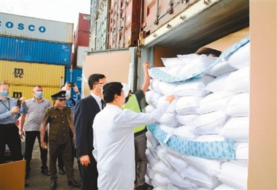 6月28日,中國緊急援助斯里蘭卡的一批糧食運(yùn)抵科倫坡國際集裝箱碼頭。
