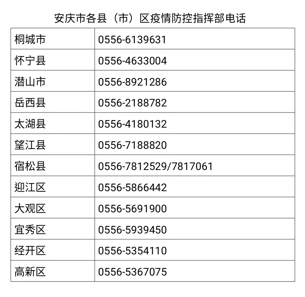 附:安慶市各縣(市)區(qū)疫情防控指揮部電話