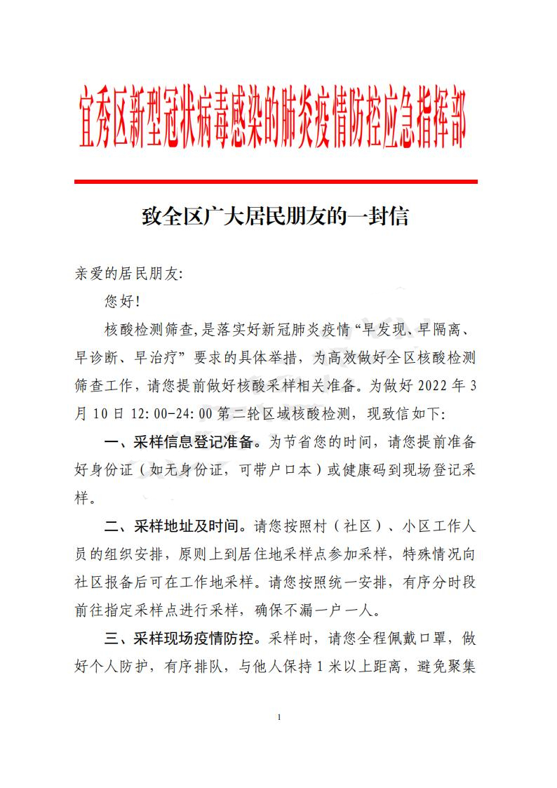 致全區廣大居民朋友的一封信