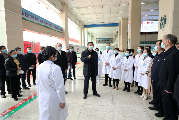 2021年3月23日,習近平總書記在福建省三明市沙縣總醫院住院樓一層大廳,同醫護人員、患者親切交流。