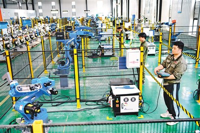 近年來,江西省贛州市加強青年技術人才技能培訓,促進適齡青年實現技能成才。圖為贛州市贛縣區的一家智能裝備制造企業內,幾名青年技工在加緊調試出口的工業機器人訂單產品。