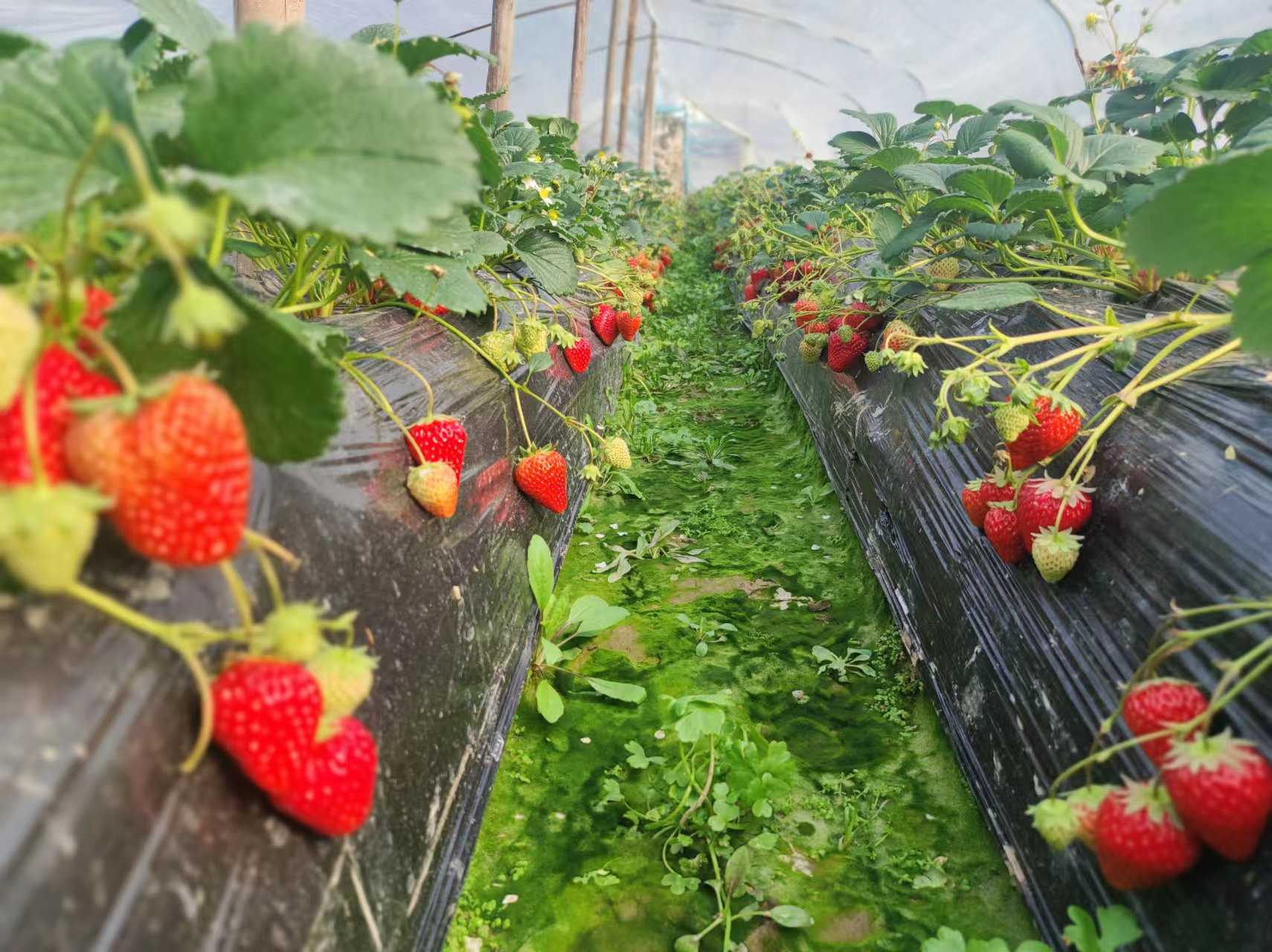桃梨園不遠處就是規(guī)模化的草莓種植采摘基地,顆顆誘人的草莓掛在田壟上,基地的工人們正忙著采摘、分裝草莓,前來采摘的顧客穿梭其間,一派豐收景象躍然眼前。園內(nèi)種植草莓50多畝,畝產(chǎn)效益2萬元以上。草莓園吸納了不少村民前來打工,最多時每天務工人員40余人,為附近村民提供了就業(yè)崗位。總鋪社區(qū)水果產(chǎn)業(yè)的發(fā)展為鄉(xiāng)村振興注入了強勁動力,隨處可見的果園更承載著村民的“鄉(xiāng)村振興夢”。
