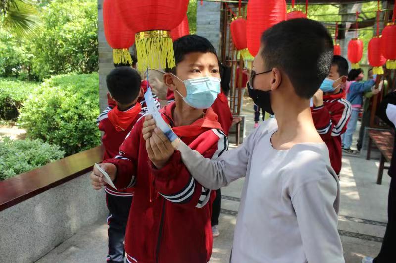 學(xué)校“求知亭”內(nèi)的10米長(zhǎng)廊掛滿了大紅燈籠,一片喜氣洋洋的景象。學(xué)校教師依據(jù)閱讀清單上的書本內(nèi)容制成一個(gè)個(gè)“燈謎”書簽,掛在紅燈籠下,學(xué)生分年級(jí)參加競(jìng)答,答對(duì)的學(xué)生均贏得書簽等小禮物。該校語(yǔ)文教研組長(zhǎng)陳路英介紹說(shuō):“舉行‘趣味燈謎’競(jìng)答活動(dòng),首先這種形式就有濃厚的傳統(tǒng)文化味道,謎面生動(dòng)有趣,學(xué)生很是喜歡。我們開(kāi)展這樣的活動(dòng),可以檢查了解學(xué)生的閱讀面和知識(shí)掌握情況,也讓學(xué)生在活動(dòng)中發(fā)現(xiàn)自己在閱讀上的不足,激勵(lì)自己更好的去讀書。”