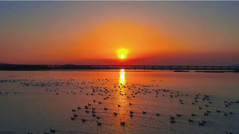 黃昏、落日、候鳥,構成了一幅美麗的畫卷。