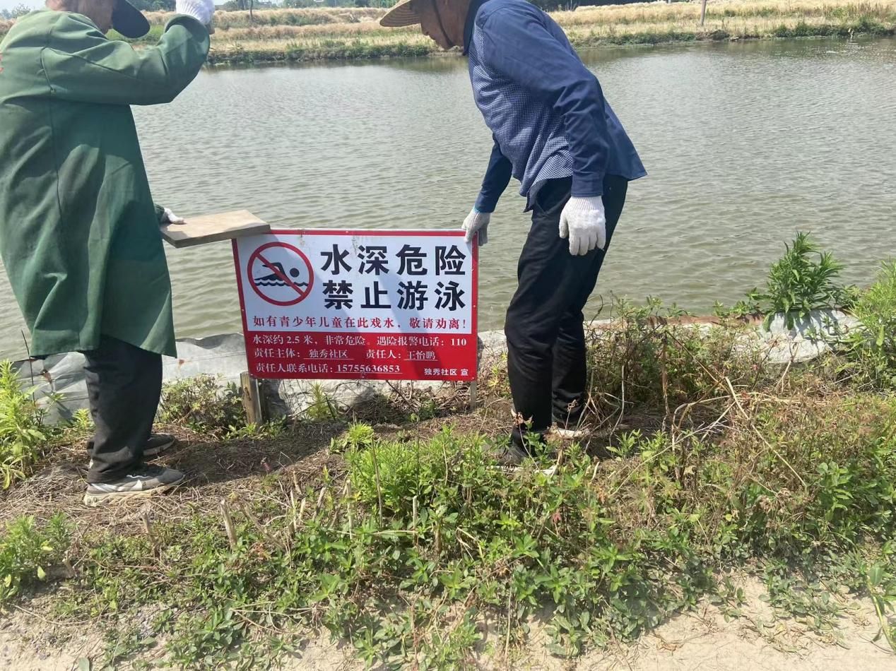 抓好落實,筑牢生命安全底線。通過摸排,社區目前已在轄區內溝渠、池塘、河流等重點水域安裝最新的防溺水安全警示牌,做到“標識醒目,人人都能瞧得見”,實現警示標語在轄區內重點區域全覆蓋。截至目前,社區已將轄區內安全警示牌全面更新完成,另外社區還將在重要區域各配置救生圈1個、救生繩1根,做到防患于未然。