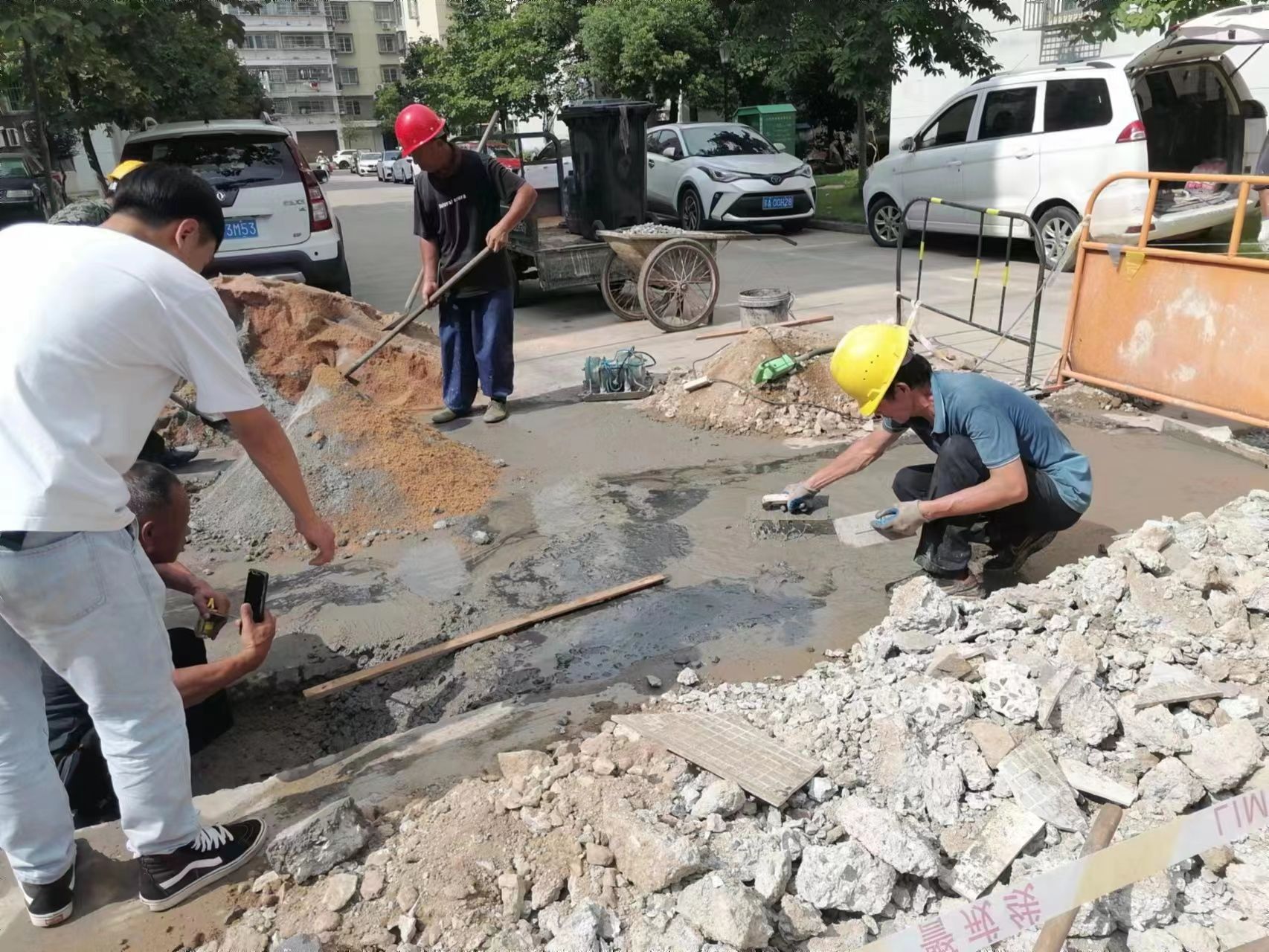 總鋪社區(qū)南山園小區(qū)因燃?xì)馊霊羰┕ば枰?021年底開(kāi)始施工,同年底小區(qū)2000多戶居民用上天燃?xì)猓蚴┕し秶鷶U(kuò)大,今年汛期雨水多將小區(qū)內(nèi)多處燃?xì)夤艿郎戏铰访鏇_刷掉,造成一節(jié)節(jié)坑洼不平的路面,給轄區(qū)居民和企業(yè)職工出行帶來(lái)了極大的不便。社區(qū)接到居民反映后,立即安排人員到現(xiàn)場(chǎng)查看,確認(rèn)路面情況。接著積極協(xié)調(diào)物業(yè)以及燃?xì)夤窘M織人員填補(bǔ)路面裂縫,全面修復(fù)小區(qū)所有坑洼不平路面并進(jìn)行加固重新鋪設(shè)。經(jīng)過(guò)為其兩周的努力,路面煥然一新,平坦整潔的路面不僅美觀,而且使社區(qū)的道路狀況得到了明顯的改善,解決了居民的出行問(wèn)題,得到了居民們的稱(chēng)贊。