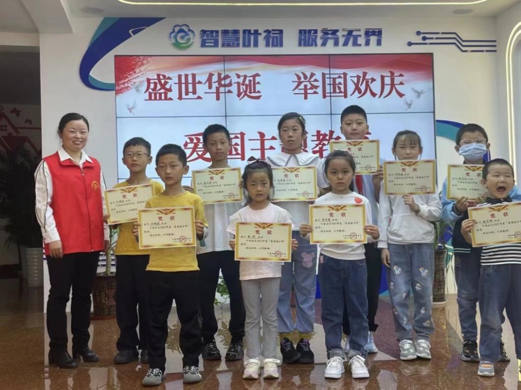 最后由葉祠社區(qū)文化志愿者向參加活動的兒童頒發(fā)“愛國好少年”的獎狀,大家高舉國旗,齊聲共祝祖國繁榮富強!